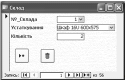 складів - проглядати, додавати та видаляти записи. Поля № Склада та