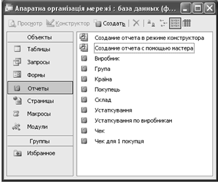 устаткування вміщує звіти (рис. 6.19), які забезпечують виведення на друк