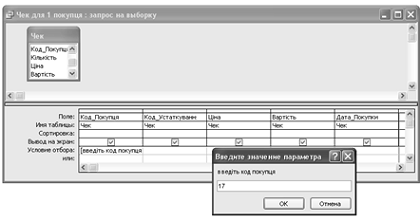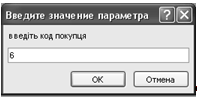 вибірки - параметр запиту. Вводиться код покупця (рис. 6.34), а потім видається