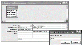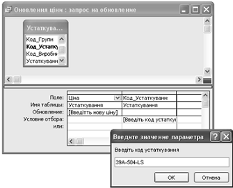 параметрами - введіть нову ціну та введіть код устаткування (рис. 6.30 та рис.