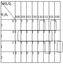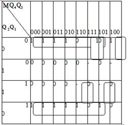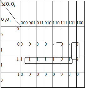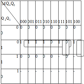За умовою завдання комбінаційна схема на елементах І - НЕ. Тому запишемо МДНФ функції збудження для тригерів за допомогою Карт Карно. Карта Карно - графічний спосіб мінімізації булевих функцій що забезпечує простоту роботи з великими виразами.