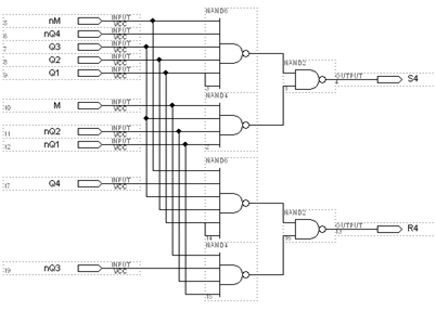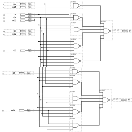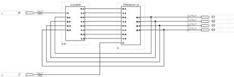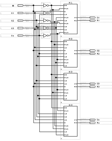 Тригери - це елементарні елементи пам’яті. У відповідь на сигнал на одному з входів виходи тригерів переходять у нові стани. Автомат працює з двома режимами роботи. Режим роботи залежить від керуючого сигналу М.