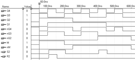 При М=0 автомат працює як двійковий лічильник, при М=1 - як лічильник в коді Грея.