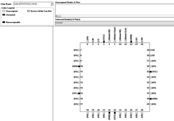 Виводи ПЛІС також призначаються автоматично. Після завершення роботи над проектом необхідно закріпити або перевизначити виводи ПЛІС, щоб при подальшій відладці проекту у складі всього виробу компілятор не зміг змінити їх призначення.