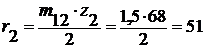 Для побудови у масштабі розгорнутої кінематичної схеми приводу і робочих креслень другого проміжного валу-шестерні та зубчастого колеса 2 визначаємо розміри зубчастих коліс.