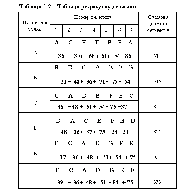 найменшим коротким маршрутом занесені до таблиці 1.2