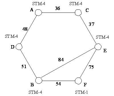 при мінімальній кількості мультиплексорів (п’ять мультиплексори рівня STM-4 і