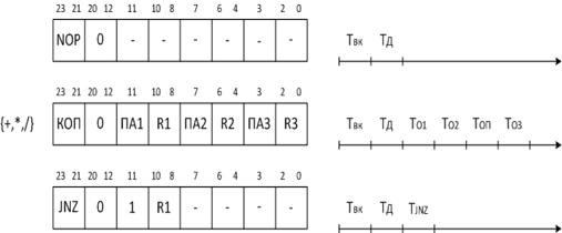 де Р+=1 - кількість процесорних тактів, τ-тривалість