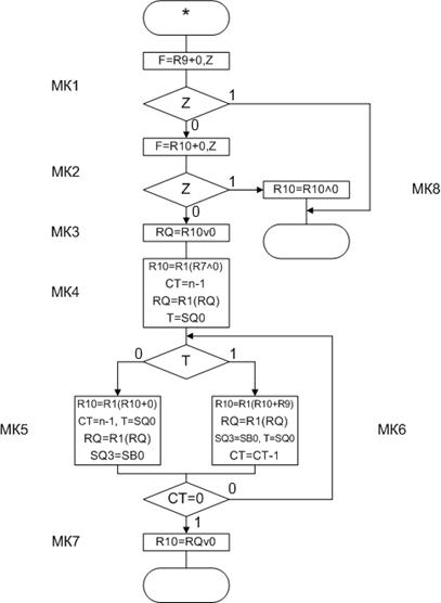 Граф мікропрограми (ГМП) операції множення показаний на рис.7.