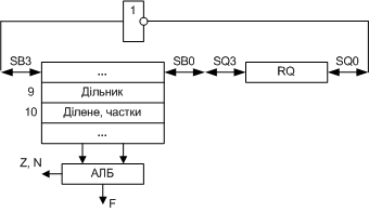операції зображена на рис.8. Вважаємо, що ділене має завжди формат слова. При