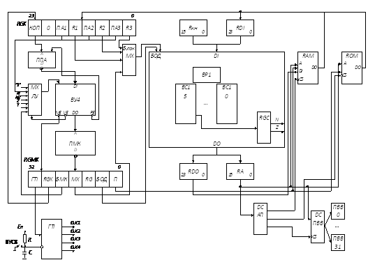 Блок призначений для обробки даних та адресної інформації. Реалізується на ВІС ВС1 та ВР1. Кількість ВІС ВС1 визначається як max{n, nA}. Так як n=24 і nA=16, то число ВІС ВС1