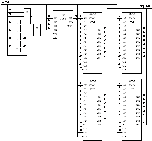 Реалізується на ВІС КМ555РР4, що мають організацію (8Кх8). Визначимо