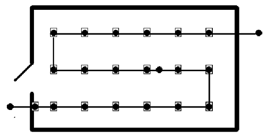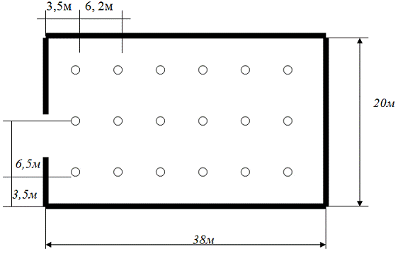 Приміщення бібліотеки на 150 тис. одиниць збережен я має розміри в плані 38 х 20 м і висоту 8 м, враховуючи вимоги ДБН В 2.5.13-98, виконуємо розташування сповіщувачів в захищаємому приміщенні за схемою квадратного розміщення пожежних сповіщувачів.
