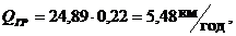 QГПР - годинна витрата пального під час простою з працюючим двигуном - очікування агрегатом завантаження і самого завантаження, год.; визначається з таблиці 5.