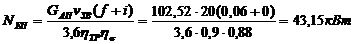) Ефективну потужність двигуна при переїздах до місця вантаження добрив розраховують за формулою (12), приймаючи до уваги , що NВВП=0; f = 0,06 , а вага агрегату дорівнює: