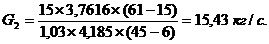 Середня температура процесу для сусла 61+15)/2 = 38 °С, для води 6+45)/2 = 26 ° С. Відповідно c2 = 4,1850 кДж/ кг×К); c1 = 3,7616 кДж/ кг×К).