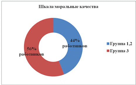 имеют высокий балл по шкале моральные качества, а группа 1 с низким показатели