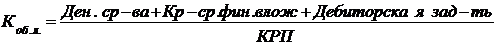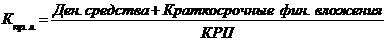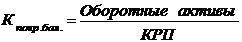 Эти показатели определяются из соотношения отдельных статей баланса: оборотные активы к итогу краткосрочных пассивов (КРП).