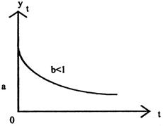 Возможна ситуация, когда наилучшей функцией по данному критерию будет признана прямая, однако, полученное на ее основе прогнозное значение будет отрицательным. Если из экономической сути показателя вытекает невозможность отрицательных значений (например, при прогнозировании объема выпускаемой продукции), то, естественно, следует отказаться от этой функции, выбрав менее "удачную" по данному критерию, но более соответствующую содержательному смыслу показателя. Например, более подходящей в этом случае может оказаться экспоненциальная кривая (8) (при значении параметра b < 1).