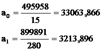 Для расчета коэффициентов линейного тренда воспользуемся выражениями, полученными из системы нормальных уравнений после переноса начала координат в середину ряда.