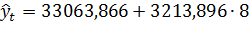 Для определения прогноза показателя надо подставить в полученную модель соответствующее значение временного параметра (t=8).
