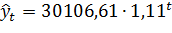 Для определения параметров тренда, описываемого показательной функцией, воспользуемся (9), (6):