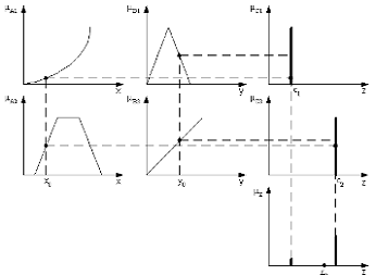 Фаззифікація вхідних змінних, що визначають висловлювання і, здійснюється аналогічно алгоритму Мамдані.