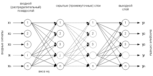 Нині запропоновані різні схеми класифікації нейронних мереж і відповідні алгоритми їх навчання. Одним з найпоширеніших алгоритмів навчання є так званий алгоритм зворотного поширення помилки (back propagation). Цей алгоритм є ітеративним градієнтним алгоритмом мінімізації середньоквадратичного відхилення значення виходу від бажаних значень (мінімізації помилки) у багатошарових нейронних мережах [8].