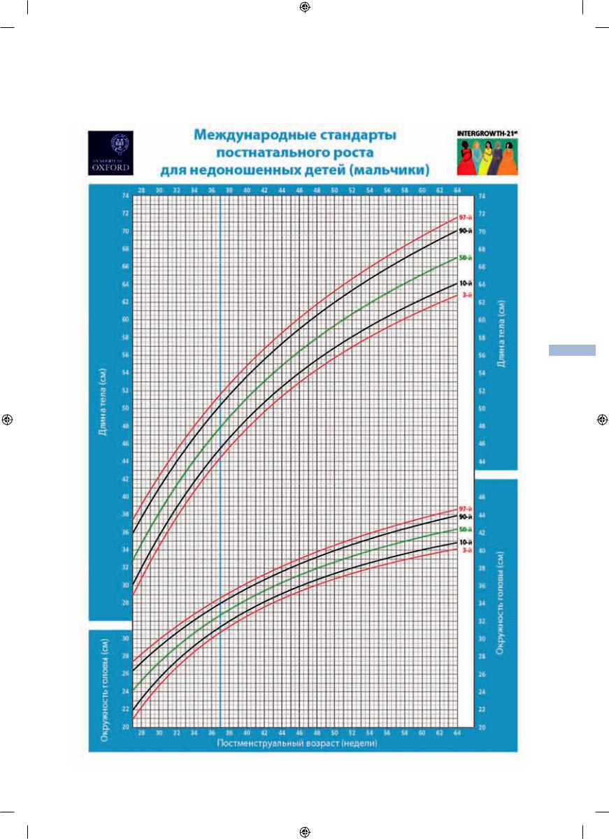 Международные стандарты постнатального роста для недоношенных детей, длина тела/окружность головы (мальчики)