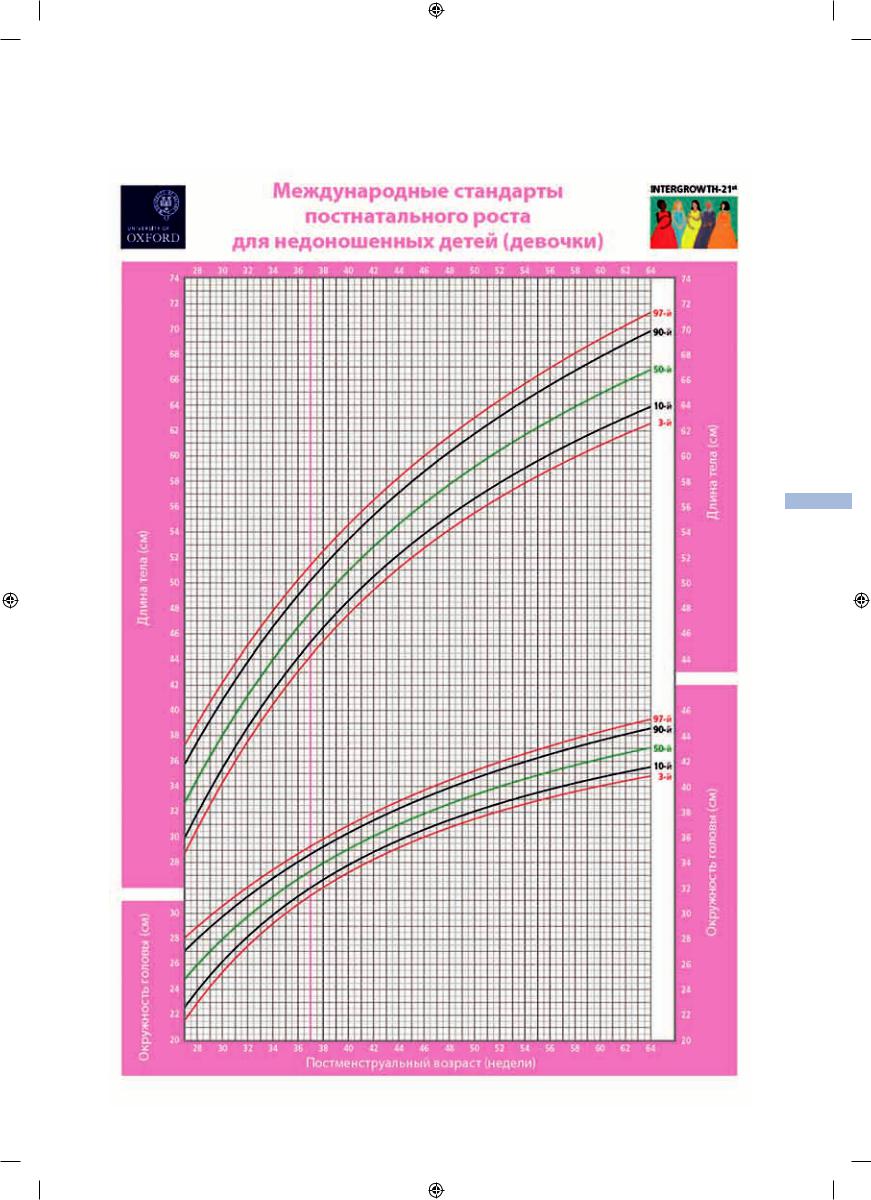 Международные стандарты постнатального роста для недоношенных детей, длина тела/окружность головы (девочки)