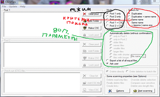 Выбираете режим работы, критерии поиска и