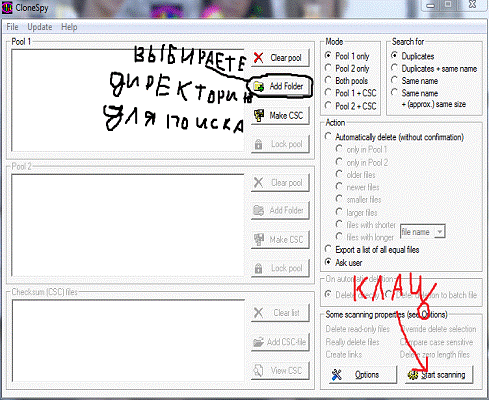 Выбираете директорию для поиска и нажимаете «Start scanning»