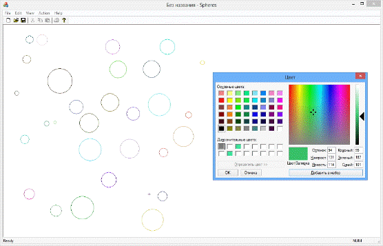 Вызов окна изменения цвета окружностей |