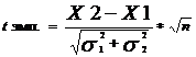 среднее группы первых измерений, σ22 - стандартное отклонение вторых измерений, возведенное в
