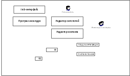 Как было сказано выше, существует принципиальное отличие интеллектуальных систем от традиционных компьютерных систем, что требует и принципиального отличия в их внутреннем устройстве, понятие интеллектуального портала заключает в себе следующие компоненты (см. рис. 1.1.):