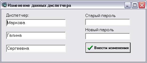 Рис. 2.4. Форма «Изменение данных диспетчера»