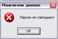 внесенные в поле Старый пароль не совпадают с существующим паролем, то