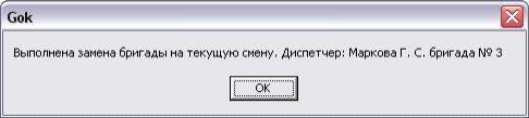 После того как пользователь вошел в систему данные о составе смены (машина-водитель) формируются исходя из утвержденного состава бригад, (т.е. автоматически выбирается та бригада, которая закреплена за диспетчером, вошедшим в систему) и в дальнейшем вносятся в базу на текущую смену. Если диспетчер по каким-либо причинам работает не в свою смену, ему необходимо закрепить себя за работающей фактически в данную смену бригадой.