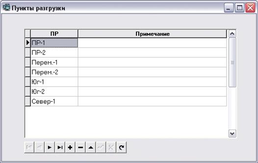 Рис. 2.11. Форма «Пункты разгрузки»