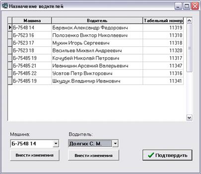 Рис. 2.13. Форма «Назначение водителей»