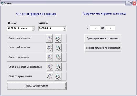 Данные отчеты и графики могут быть составлены как за любую из прошедших смен для любой машины (работавшей в выбранную смену), так и для текущей смены, даже если она еще не закончена
