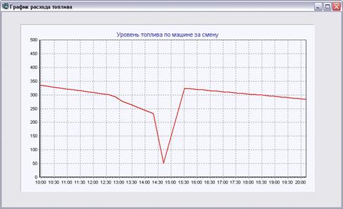 датчика топлива выбранной машины в течении указанной смены (рис 2.16).