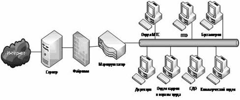 предприятия. Генеральному директору подчиняется юридический отдел, отдел по
