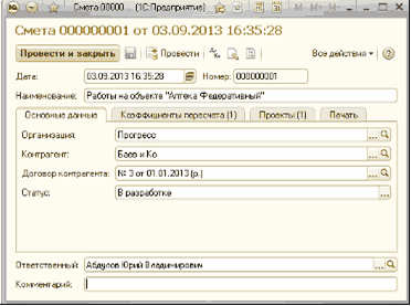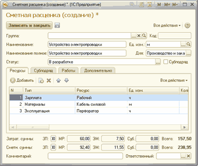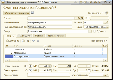 3.4 Добавление позиций в смету. Окно редактирования сметы