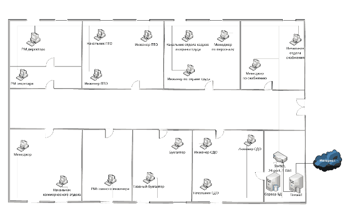 Схема ЛВС ООО «СТРОЙСНАБ» (подробная)