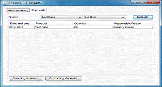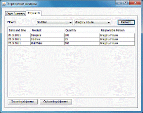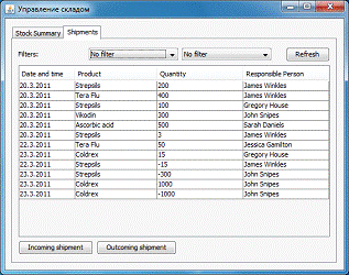 Основным объектом манипулирования системы служат товары и записи о поставках, которые содержат информацию о доставленном товаре, объёме партии и ответственном лице-работнике склада.