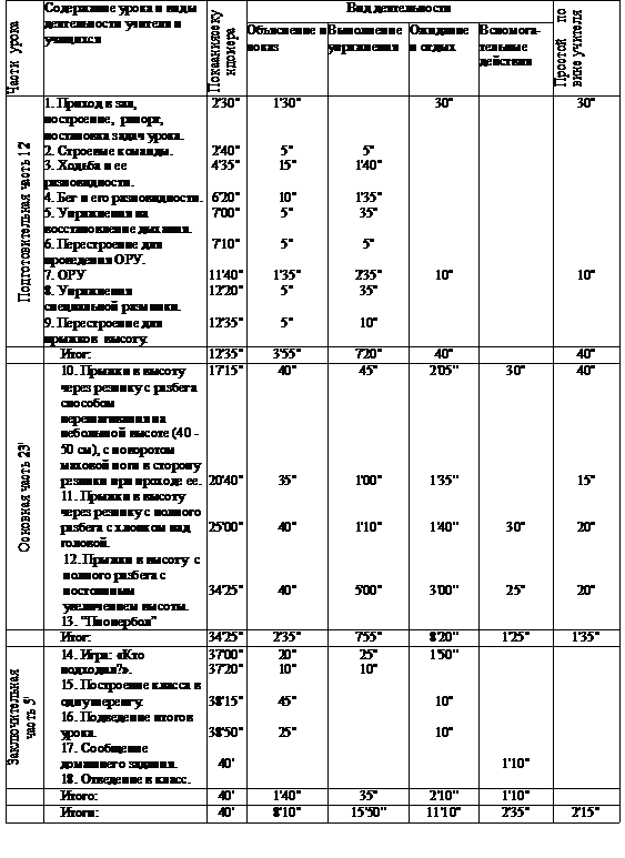 занятия по легкой атлетике в 5 классе. Проведения хронометража урока.