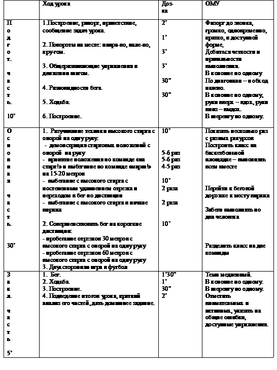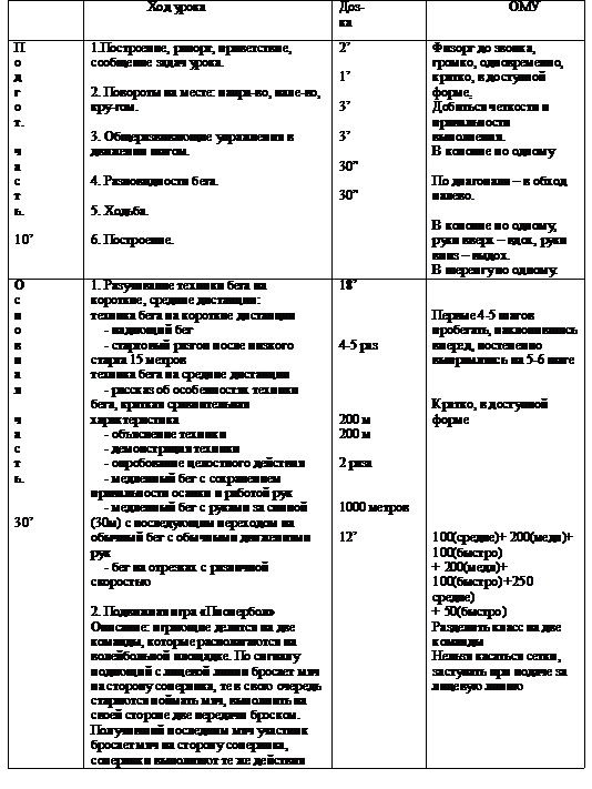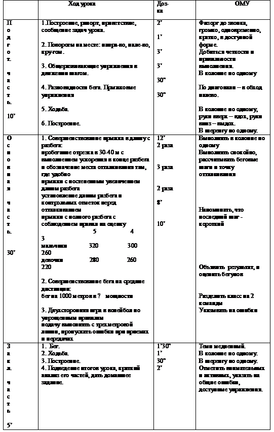 План-конспект урока по легкой атлетике № 10 для 5 класса.