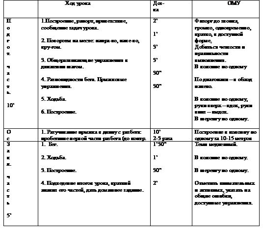 проведение занятия по легкой атлетике в 5 классе. Ознакомление с