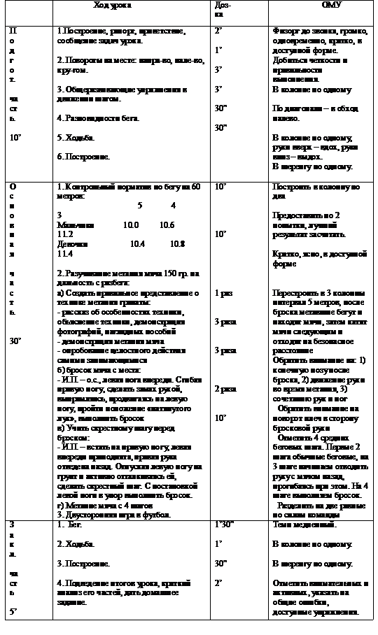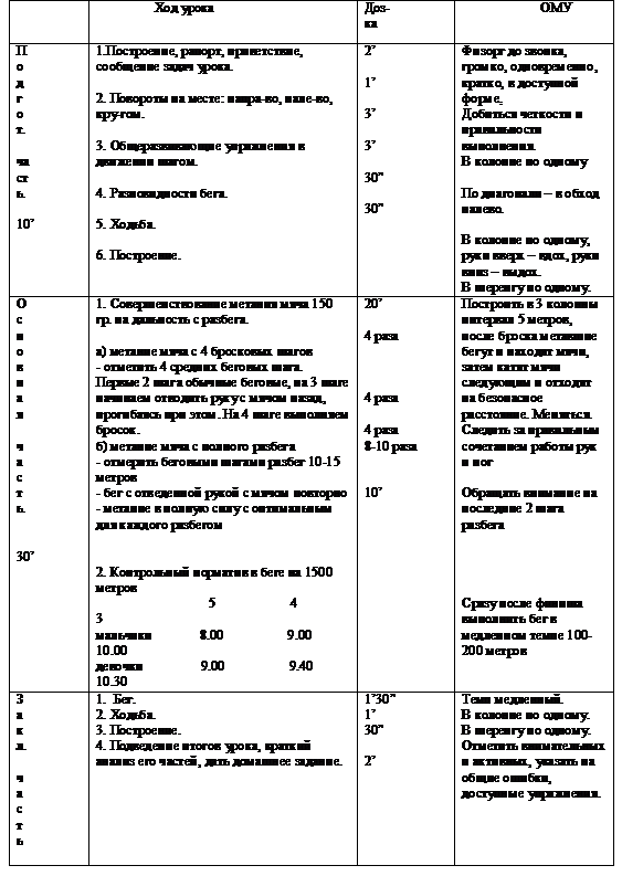 План-конспект урока по легкой атлетике № 1 для 5 класса